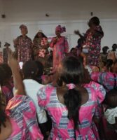 C’est la Conseillère sociale qui a apporté ces pagnes et un lot de plusieurs paquets des jus aux mamans pour agrémenter leur fête de l’indépendance.