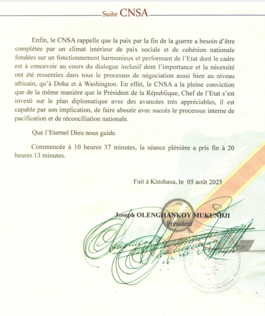Face à ce constat d’échec, nous appelons solennellement le Chef de l’État, Félix Tshisekedi, ainsi que les membres influents du gouvernement et du Parlement, à prendre leurs responsabilités en procédant à la dissolution immédiate de la CNSA. Il est temps de mettre fin à cette structure obsolète, devenue un poids mort pour les finances publiques et une illusion pour le peuple congolais. Le tonnerre