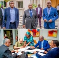 À l’issue d’une réunion extraordinaire des anciens locataires de la Primature, un communiqué a été signé par les cinq participants : Léon Kengo Wa Dondo, Samy Badibanga Ntita, Jean Mabi Mulumba Norbert Likulia Bolongo et Adolphe Muzito M’fumu Pa.