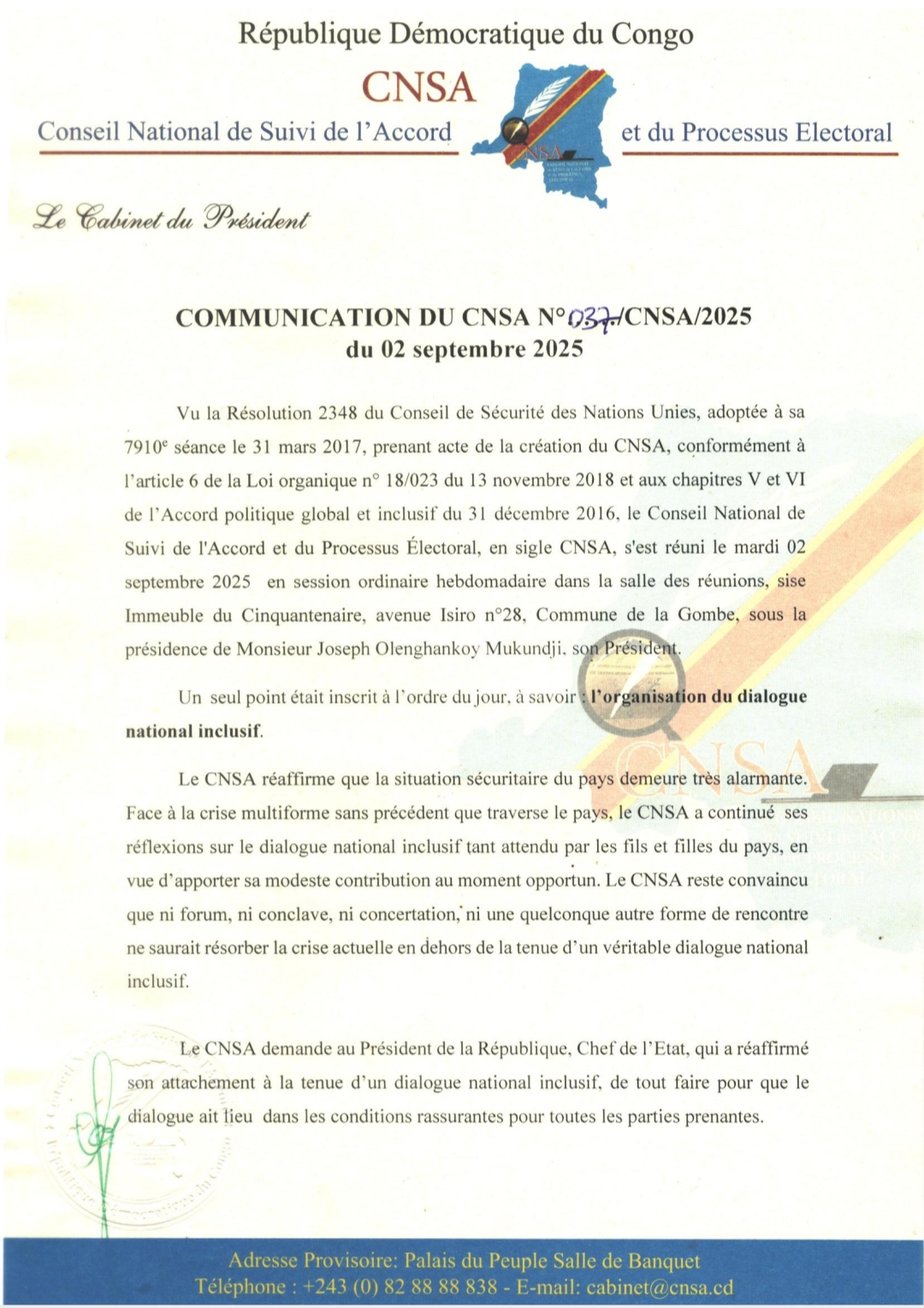 Si le CNSA a été créé pour faire le suivi de la mise œuvre de l’accord de la Saint Sylvestre, personne, aucun congolais, aucune institution républicaine n’a donné mandat à cette structure honteuse de juger de l’opportunité ou non de la tenue d’un dialogue.