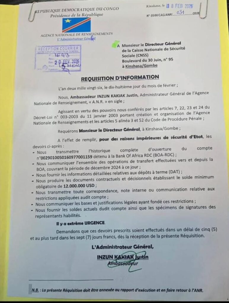 Pour l’heure, M. Mudiay Kazadi Manjivita est entendu par les services compétents afin de faire la lumière sur ces graves accusations. L’affaire pourrait avoir des répercussions majeures au sein de la direction de cet organe clé de la sécurité sociale en République Démocratique du Congo.