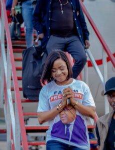 Ayant atteri à l’aéroport international Bangoka aux crépuscules de la journée, l’élue d’Ango a reçu un accueil digne de son rang de la part de nombreux de ses partisans venus l’attendre au pied de l’avion.